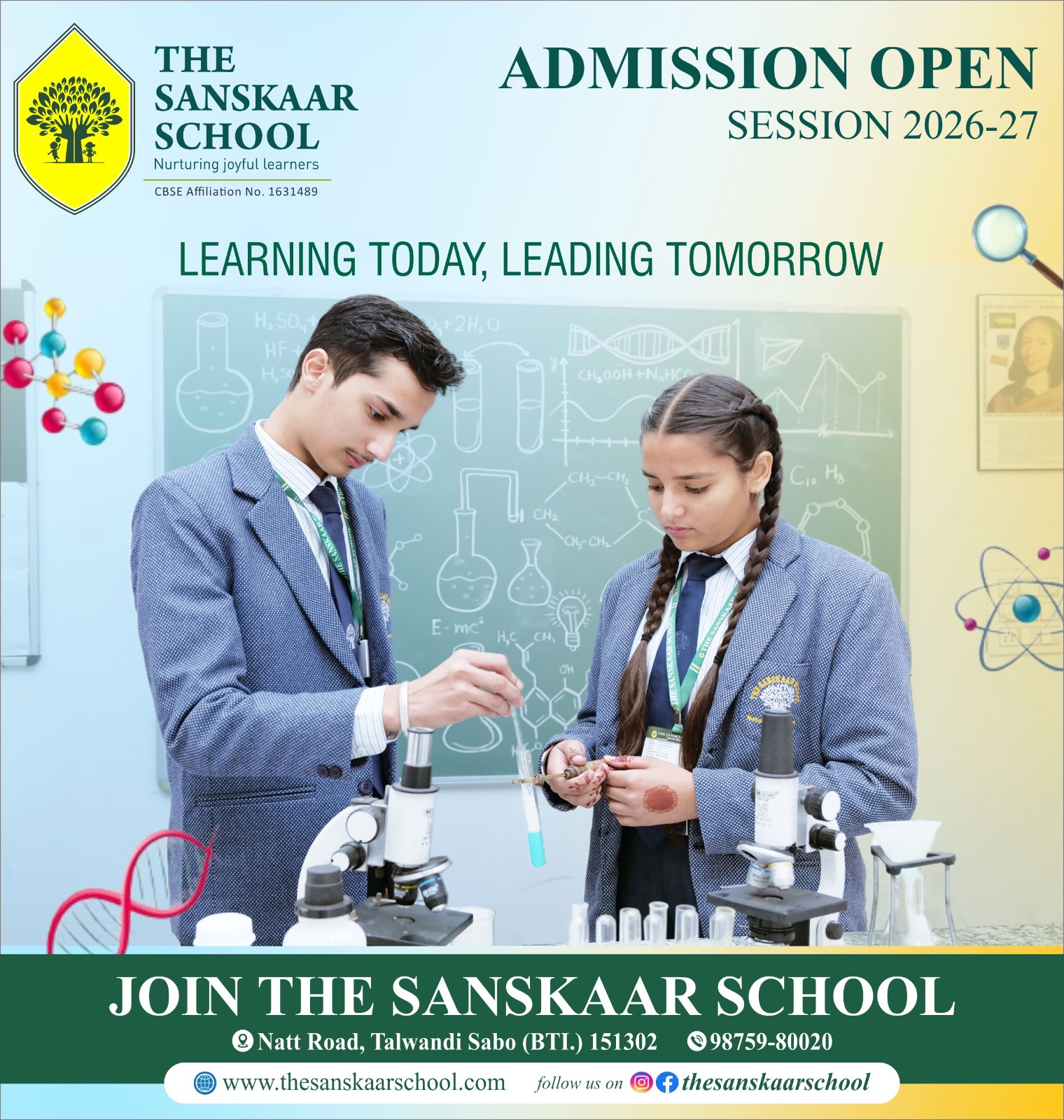 The Sanskaar School is recognized as one of the leading CBSE schools in Talwandi Sabo, Punjab, established in 2019, At School, we believe a 21st-century learning environment cannot be revolutionized by installing technology driven gadgets but by making learning engaging and enriching. It is essential to encourage students to communicate, collaborate and create in ways which were never before possible.